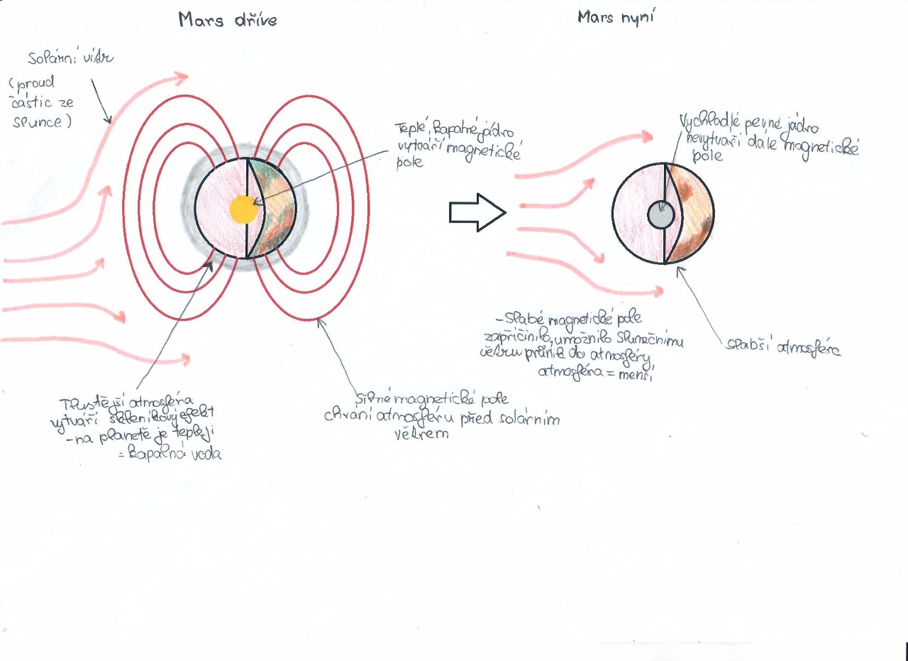 Je to dáno především velikostí naší planety - je větší než Mars. Její jádro zůstalo horké/kapalné až do dnešní doby, nestihlo vychladnout, protože jak je kapalné, tak vlastě pohybem horkého tekutého kovu vzniká magnetické pole - Mars má již jádro pevné, proto má tak nízké hodnoty magnetického pole.